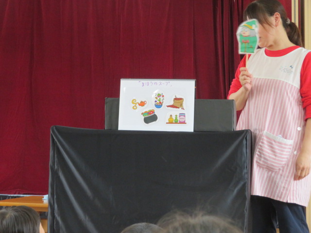 お誕生会(10月) 2025.10.28 23日(木)は、お誕生会でした。 誕生者は、13名でした。 出し物は、スケッチブックシアターで「魔法のスープ」の 話を見聞きしました。みんなで呪文を唱えて、美味しいスープと ケーキができ、大喜びしていた子どもたちです。 ゲームは、男の子チームと女の子チームに分かれて玉入れをしました。 Tweet Share 10月 子育て支援「スマイル」 前の記事