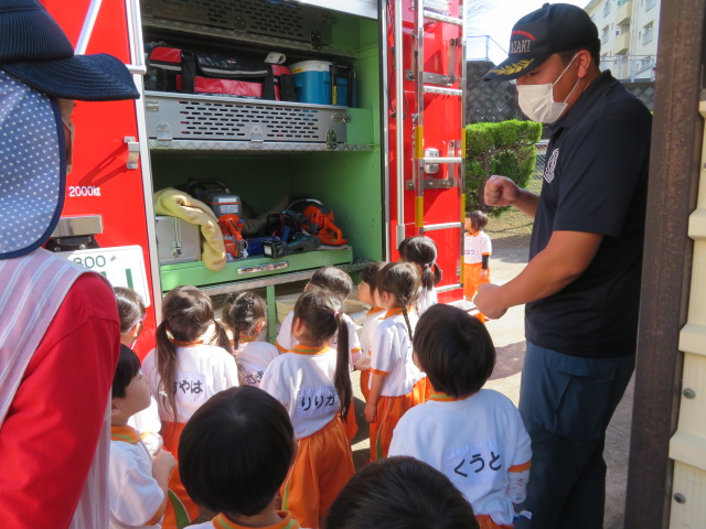 防災訓練 2025.10.30 今日は、消防署の方に来ていただき、避難訓練の 様子を見てもらいました。 職員は、消化訓練を行いました。 最後に、消防車を見せていただき、写真撮影をしました。 Tweet Share お誕生会(10月) 前の記事
